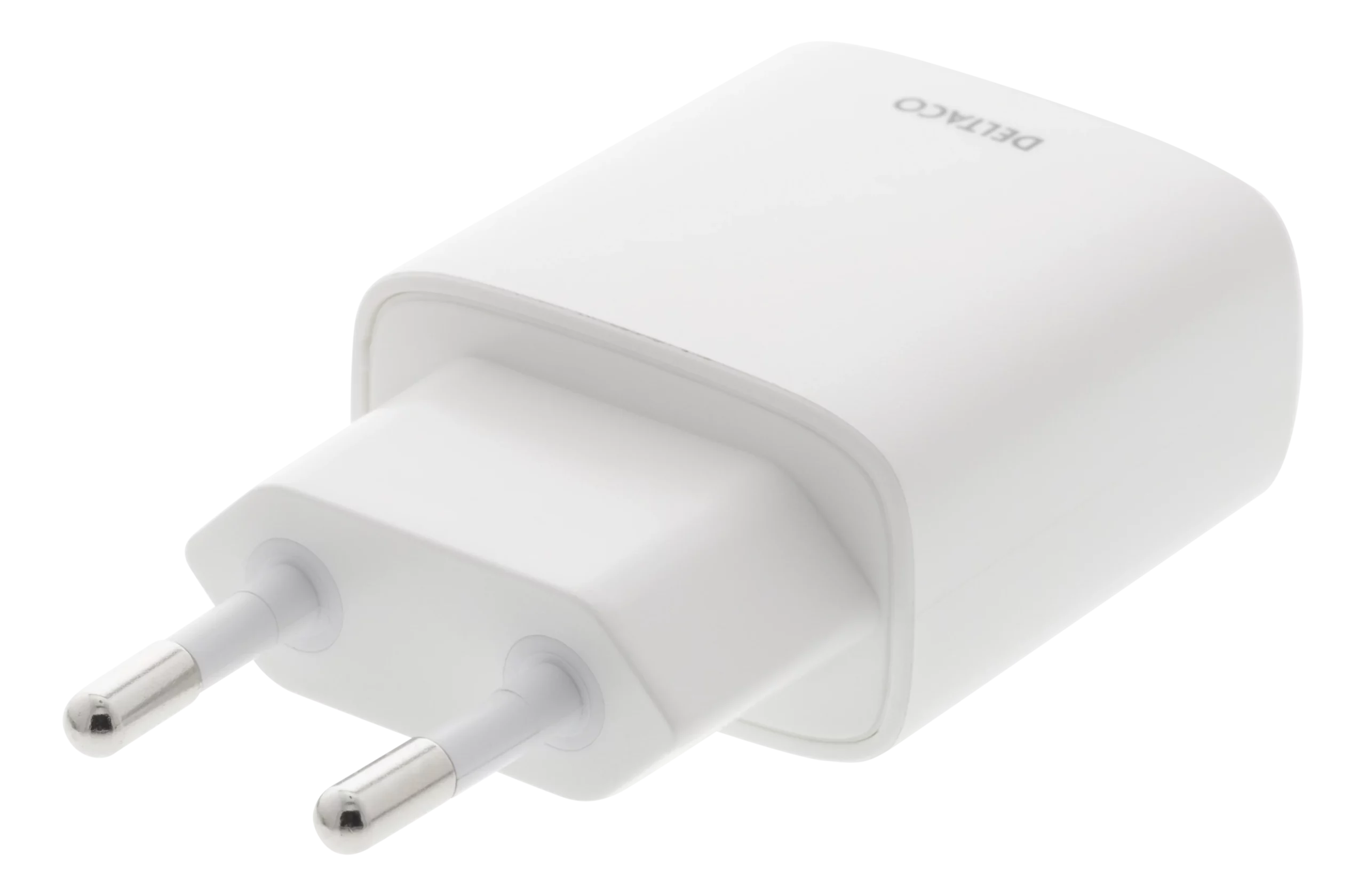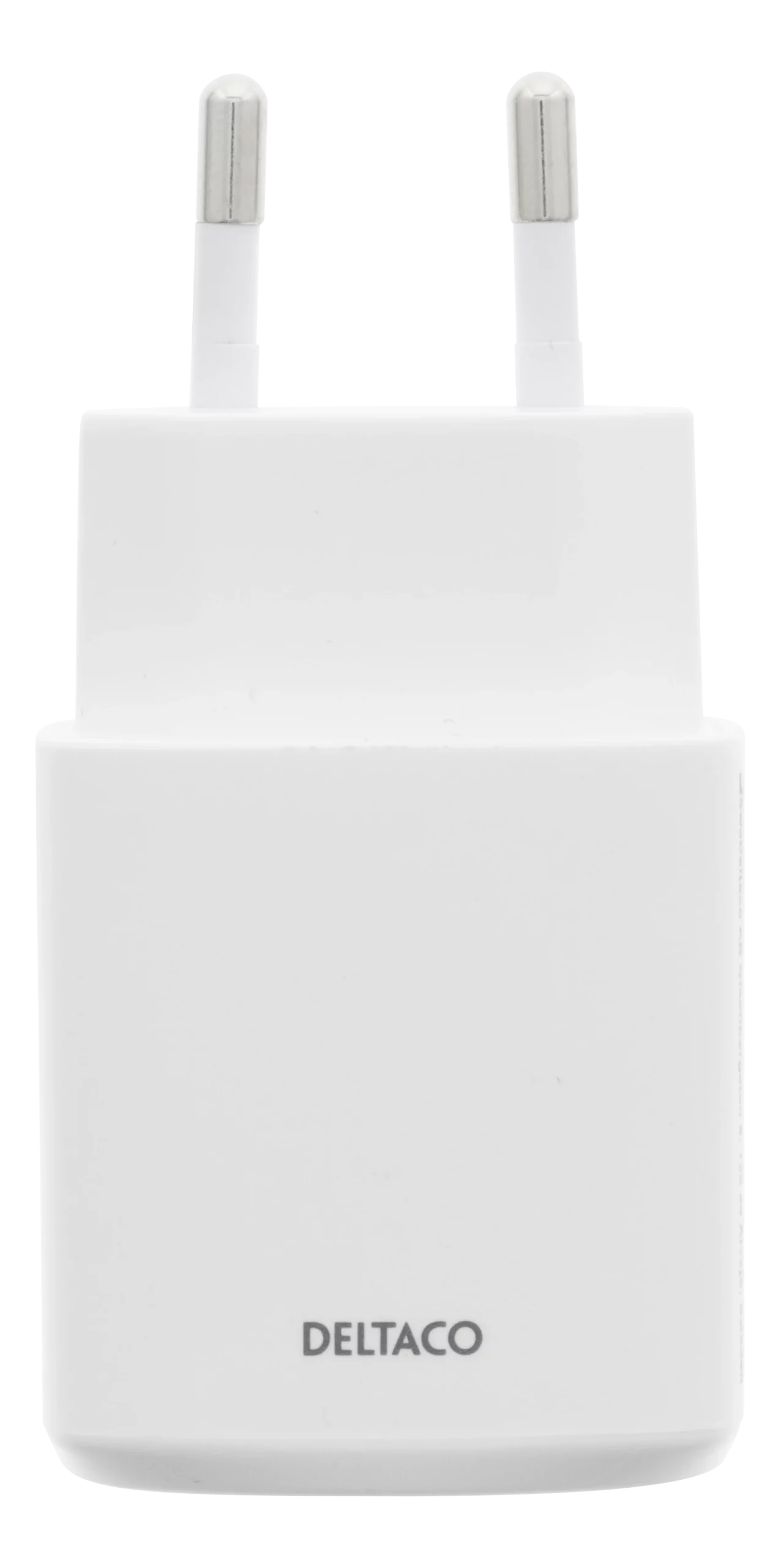 Vit väggladdare för att ladda mobila enheter snabbt.