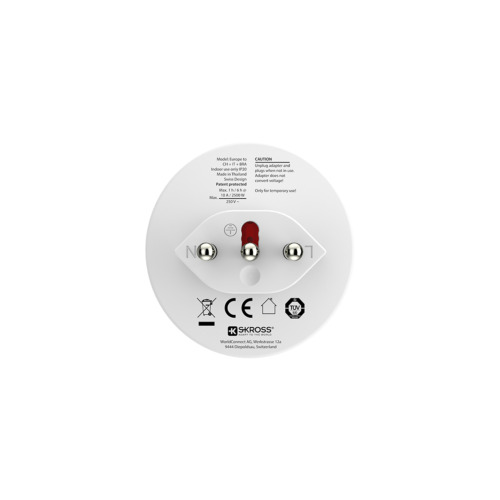 Denna smarta jordade adapter från Skross fungerar till Italien, Schweiz, Brasilien eller något av de andra tolv länderna med samma standarder. Gemensamt för dessa standarder är att mellanpinnen i uttaget är jorden. Genom att justera placeringen av denna väljer du vilket typ av eluttag adaptern ska passa i.
