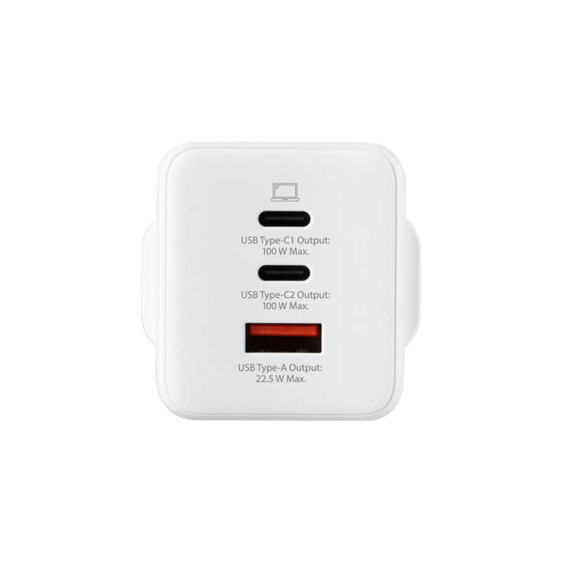 1 x 100 W GaN PD Wall Charger (2 x USB Type-C, 1 x USB Type-A)